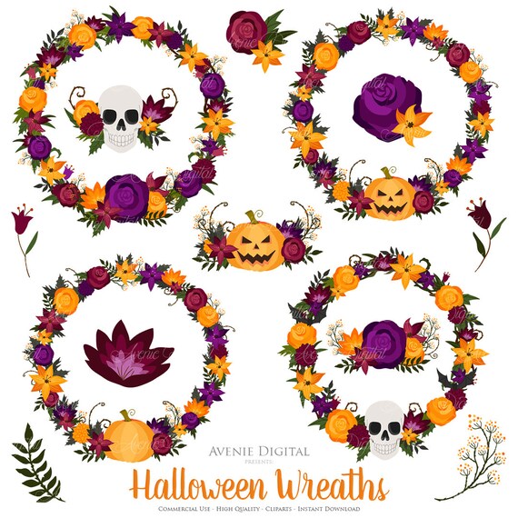 Spooky Holiday Set For Commercial Use Scrapbook Printables Halloween Flower Wreath Clipart Diy Flower Design Elements And Floral Wreaths Clip Art Art Collectibles from i.etsystatic.com